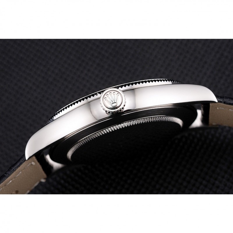 Armband: Rolex und logo Wärme mit Rolex logo-Prägung schwarzen Krokolederarmband poliert Haken-Schließe Edelstahl geschnitzt