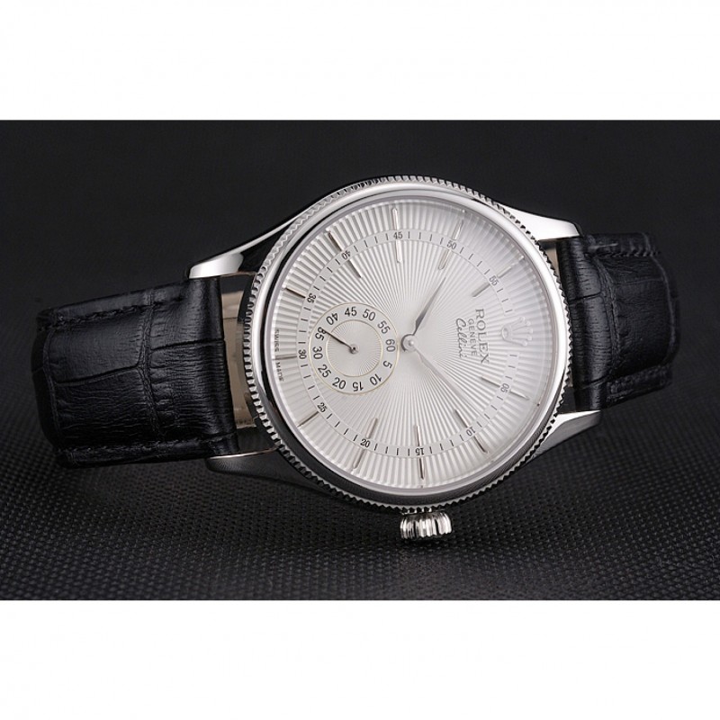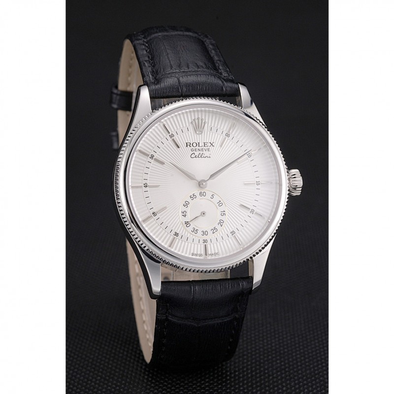 Schweizerer Rolex Cellini weißes Zifferblatt Edelstahl Gehäuse schwarzen Lederarmband